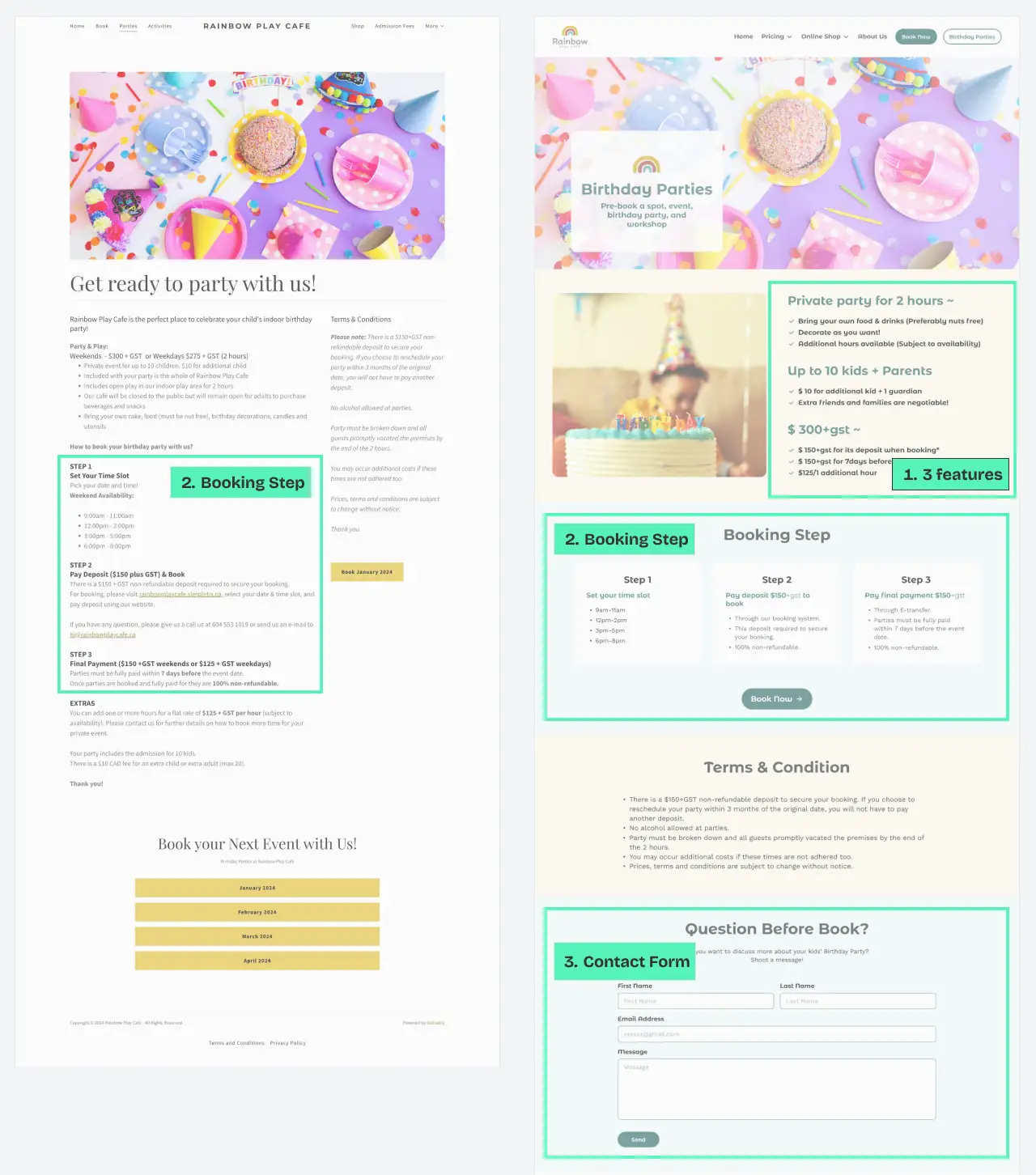 - Highlighted 3 features: We've organized and listed the key features of the birthday plan at Rainbow Cafe, making it easy for users to review.